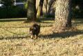 het park ingegaan en daar ging Kaala op zoek naar stokken.