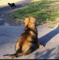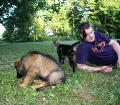 Gisteren heeft Kaala de jongens geholpen, om een begin te maken met de schutting. Er moest een boomstronk uitgegraven worden, en daar is Kaala toch ook héél goed in. ;-)) Nu de oude schutting helemaal verwijderd is én de buurvrouw met vakantie is, hebben we nu een dubbele tuin. Wat een vrijheid geeft dat, denken Kaala én Simba. Later op de avond kwam mijn moeder met Snoopy gezellig langs en zo hebben de 2 dames nog keihard gespeeld. We moeten Snoopy soms wel beschermen, want Kaala kan soms erg fanatiek zijn en helemaal in het spel op gaan, ondanks dat Snoopy goed van zich afbijt. Kaala groeit natuurlijk ook heel snel en kent soms d'r eigen kracht niet, maar ze kunnen elkaar ook heel lief kusjes geven en soms heel even naast elkaar liggen.