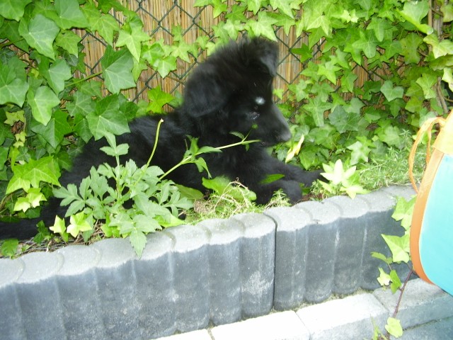 Hierbij de eerste foto’s van Artio. Deze zijn genomen op 27 juni, de dag dat wij Artio ophaalde. De terugreis ging voorspoedig, 5 minuten na vertrek was Artio al onder zeil en heeft dit vol gehouden tot net voor Apeldoorn. Hier zijn wij even bij een tante langs gegaan, even de benen en pootjes strekken. Hier heeft Artio kennis gemaakt met Tibo. Artio voelde zich niet op gemak daar de boxer nogal druk was.