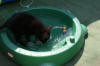 Bij deze de foto's van ons zwembad haha en je ziet ze vind het prachtig. Ook een hele mooie met maar 1 oor staand. Vandaag is goed te zien dat ze toch flink de hoogte in gaat want ze komt al veel verder op de bank en ze past er ook niet helemaal meer onder. Gek he maar inene zie je het gewoon wel.