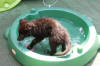 De laatste vier foto’s van Artio zijn vrijdag 3 juli genomen. Artio begint zich meer en meer thuis te voelen. Er zijn 2 dingen wat ie niet leuk vindt, opgesloten zitten in de bench, en deze heeft ie dan ook snel weer open, Bear Power?, en wandelen aan de lijn, maar dat gaat steeds beter.