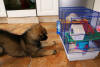 dag... dus ze wordt een grote hond. ;-)) Oh ze ligt nu in d'r bench...whaaa
